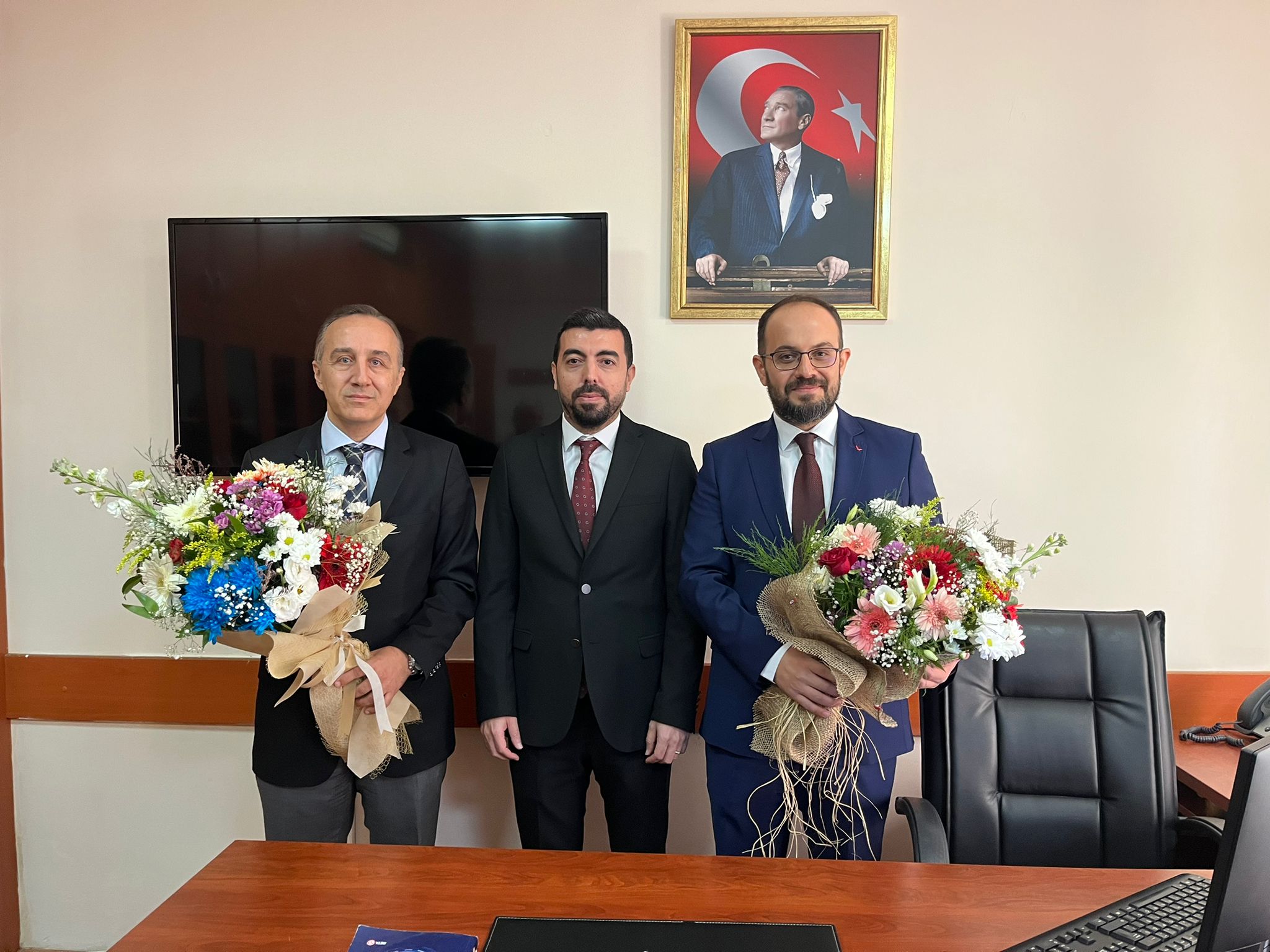 Devir teslim töreni okul müdürü Doç. Dr. İlyas OKUMUŞ'un müdür yardımcılarına çiçek takdimi ve başarı dilekleri ile sona erdi.
